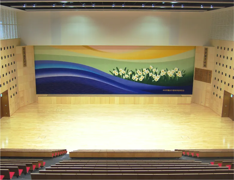 - 人間教育・心の教育を行う場として、開校時から大切にされている中村ならではの施設です。学校行事や芸術文化関連の催しを行います。2階~4階まで吹き抜けのフロアは、約1600名が収容できます。