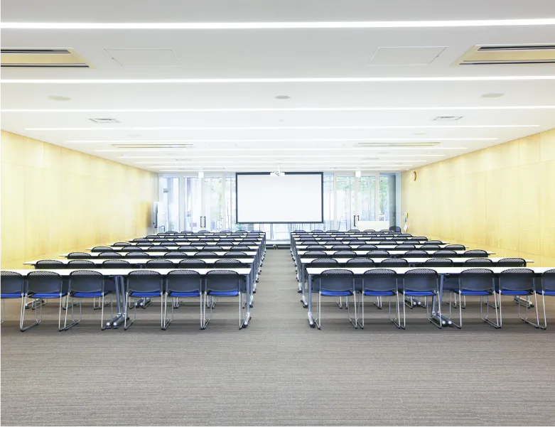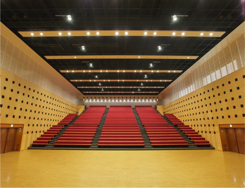 - 人間教育・心の教育を行う場として、開校時から大切にされている中村ならではの施設です。学校行事や芸術文化関連の催しを行います。2階~4階まで吹き抜けのフロアは、約1600名が収容できます。
