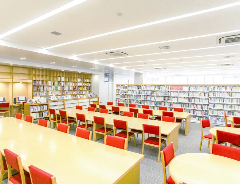 - 教務室(職員室)に近接したホワイエの一角に学習カウンターを40席設けています。授業の合間や放課後にちょっと先生に質問したい時など、この学習カウンターが便利です。