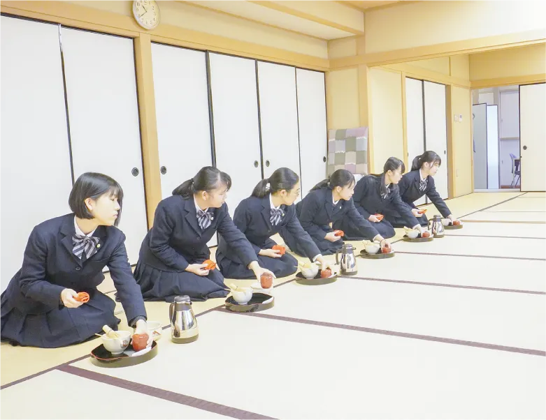 - 日本の伝統を生かした本格的な作りです。茶道や華道などの授業を通して日本の伝統文化を学ぶ中で、礼儀作法や美しい所作を学びます。また、筝曲部の練習場所にもなっています。
