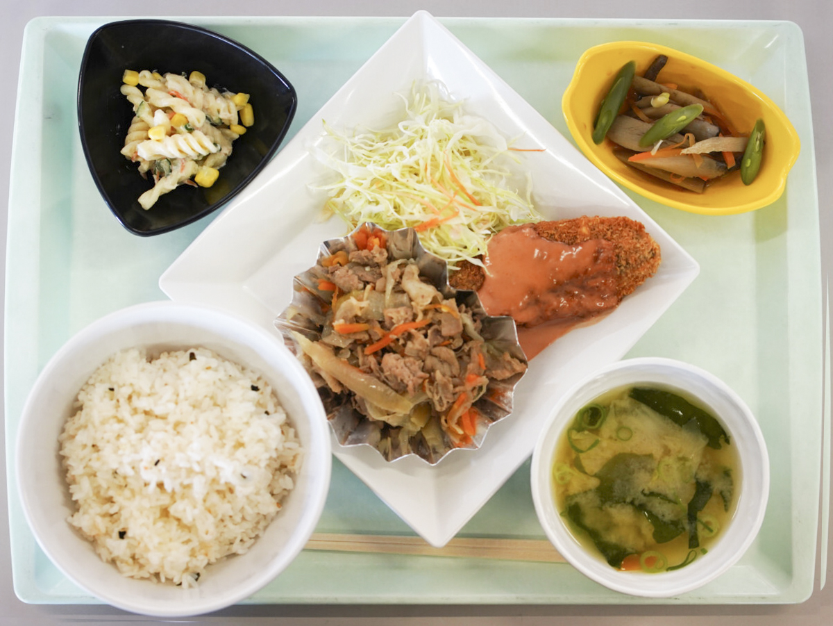 カフェテリアでは、日替わりの一汁三菜ランチをはじめ、栄養バランス抜群のメニューを多数取り揃えています。