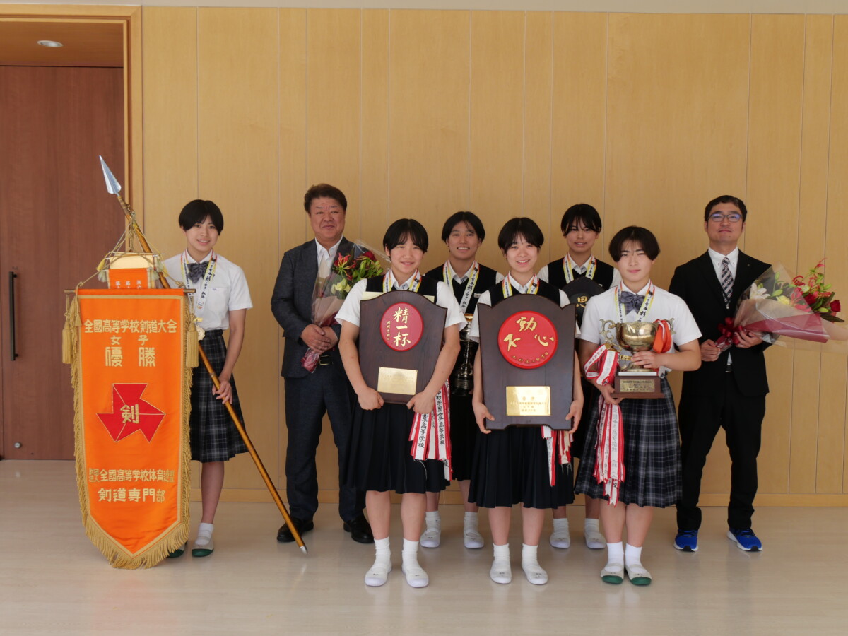 始業式終了後には、部活動表彰と剣道部のインターハイ優勝報告会が行われました。