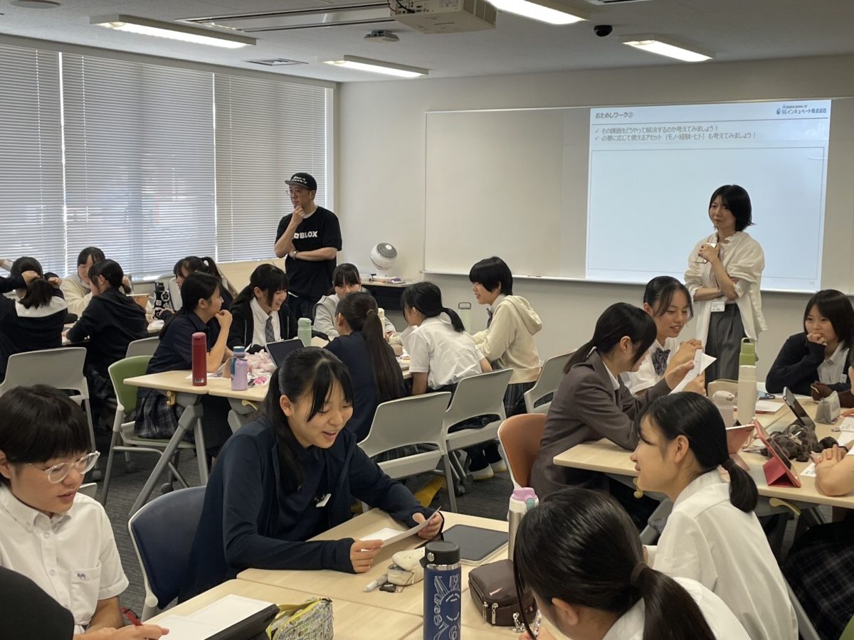 ワークショップでは生徒自身の興味や関心,生活上の違和感や不便さを起点に,「社会の誰かのためになる」サービスをグループで考え,共有する活動を行いました。