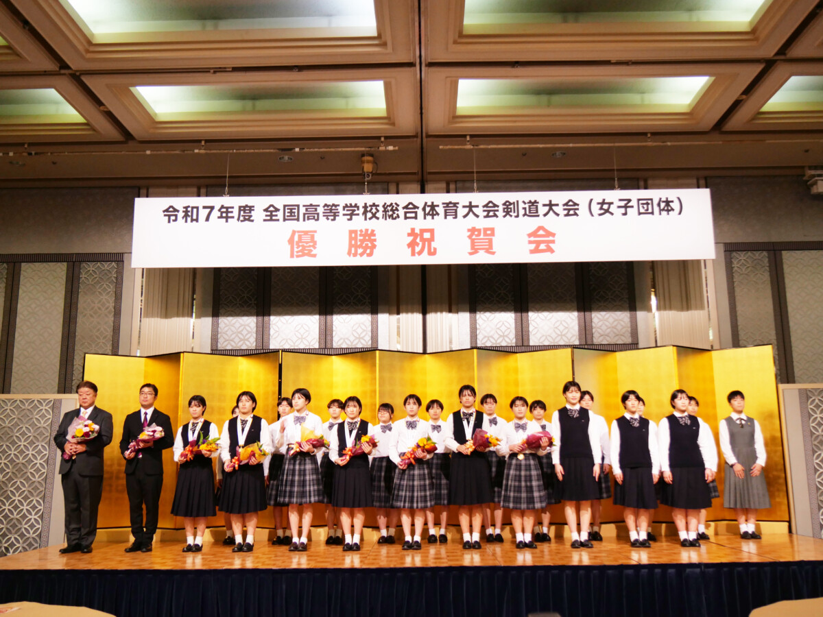 2025年10月17日(金)、ホテルニューオータニ福岡にて、令和7年度全国高等学校総合体育大会剣道大会 (女子団体)優勝の栄誉を称える祝賀会を開催いたしました。