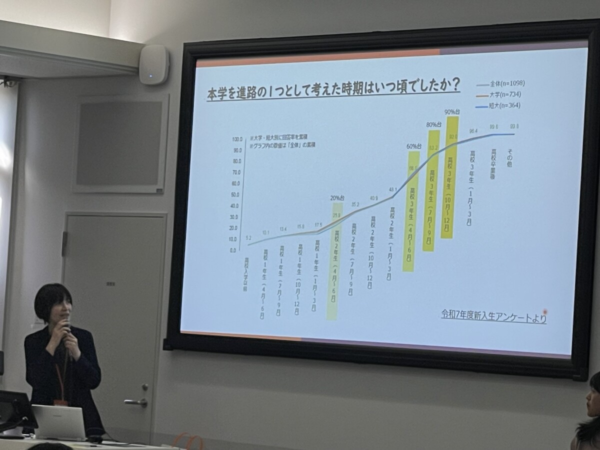 当日は、大学全体の説明会や学部紹介に加えて、現役大学生との座談会、そして翌日に行われる学園祭の紹介など、盛りだくさんのプログラムでした。