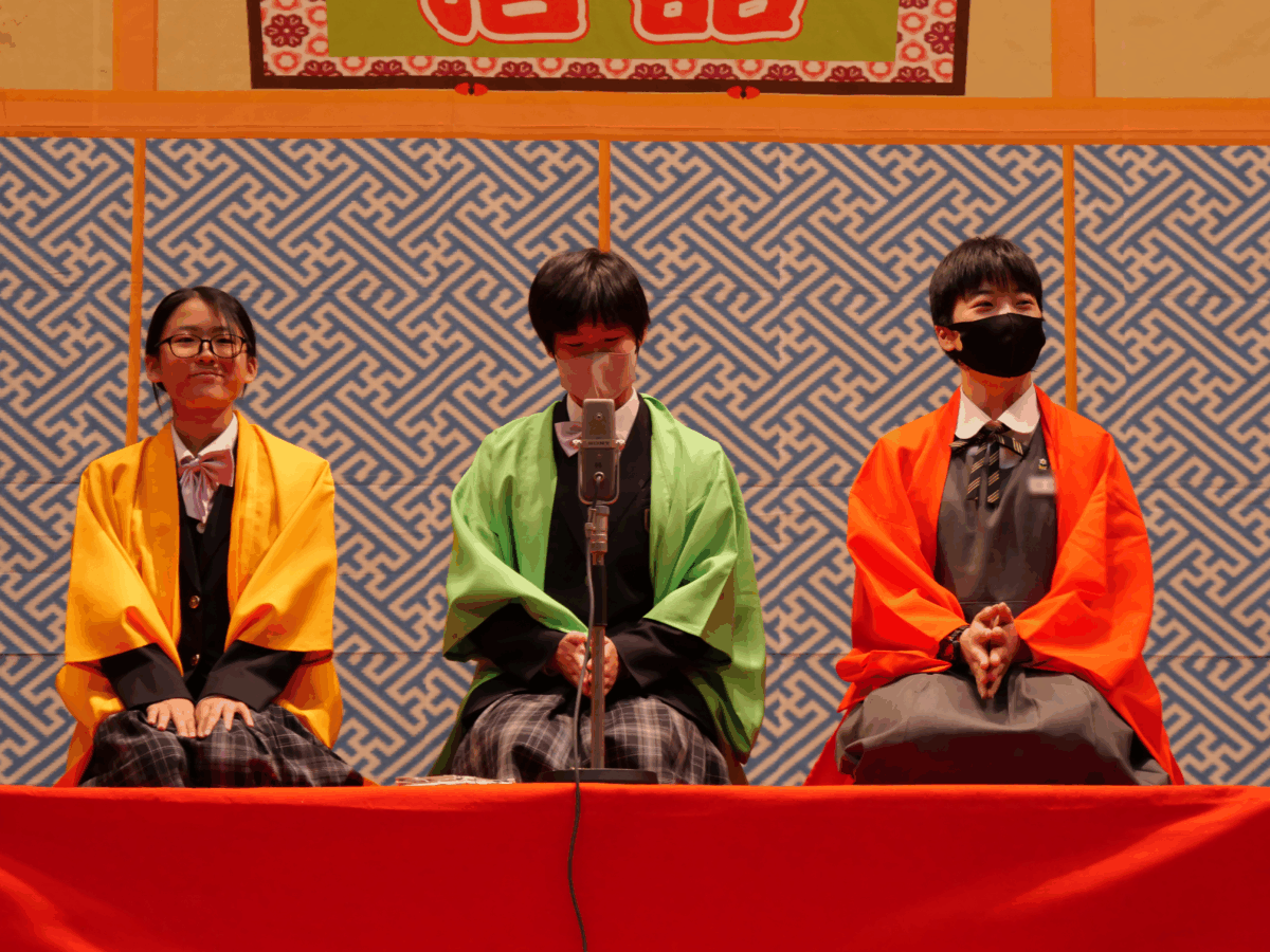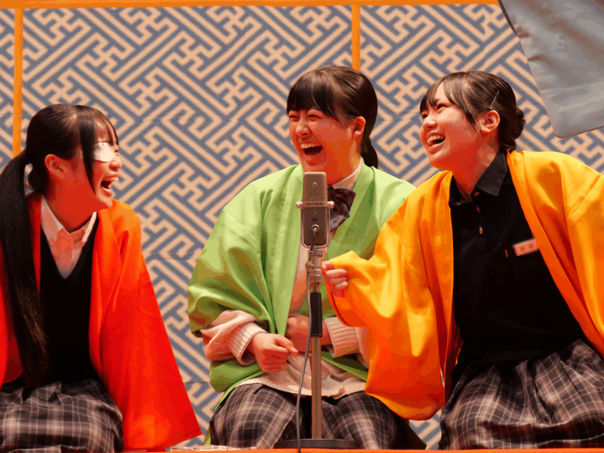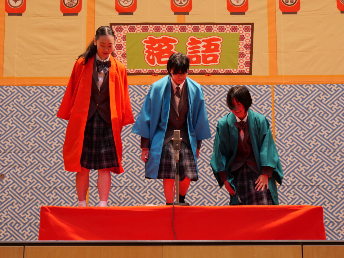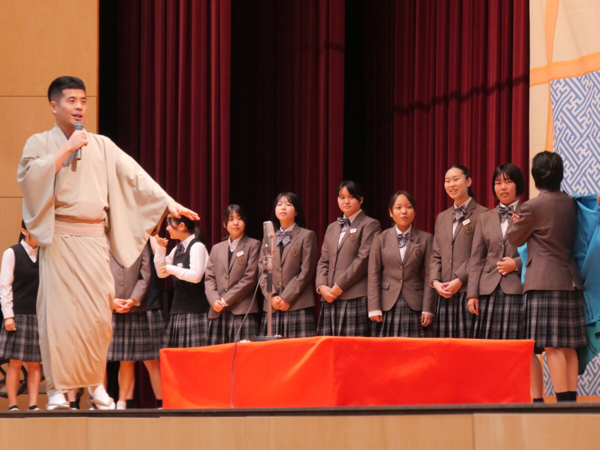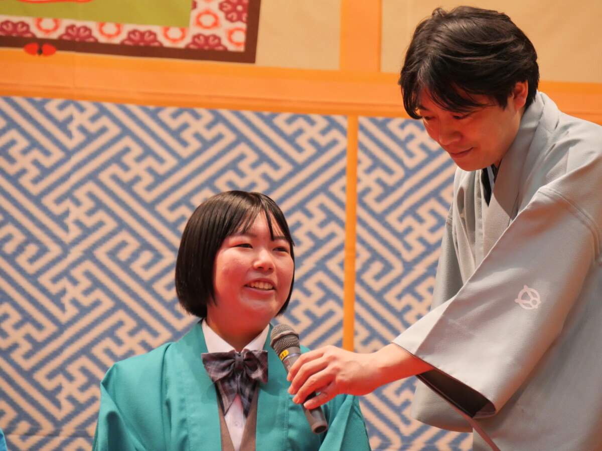 巧みな話芸とユーモアに満ちた舞台に、生徒たちは笑顔を見せながら、日本語の魅力や伝統芸能の奥深さを体感しました。