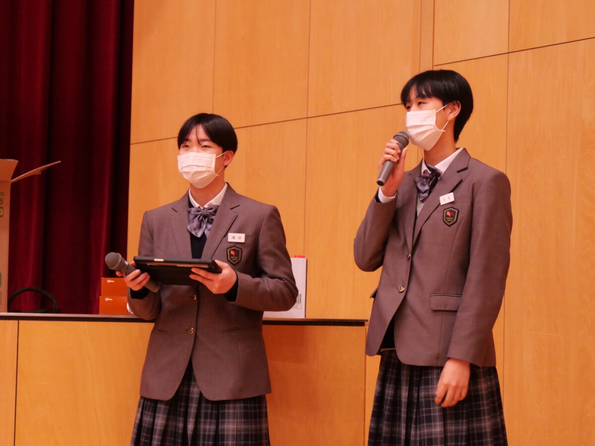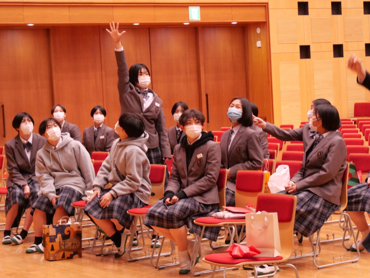 会は、有志の教職員による「サンタさん」からのクリスマスプレゼント抽選会で幕を開け、その後は先生方による余興「先生クイズ」で笑顔と歓声があふれる楽しい時間となりました。