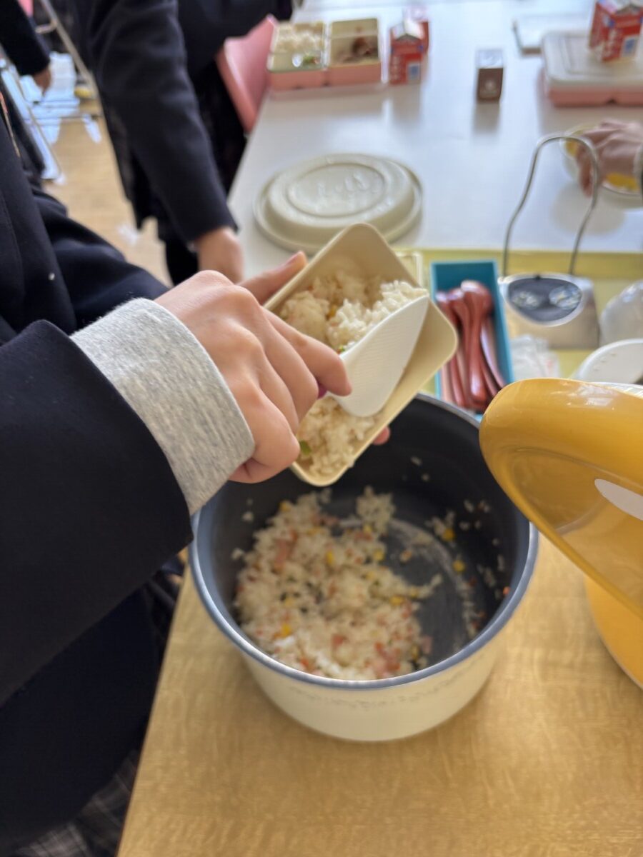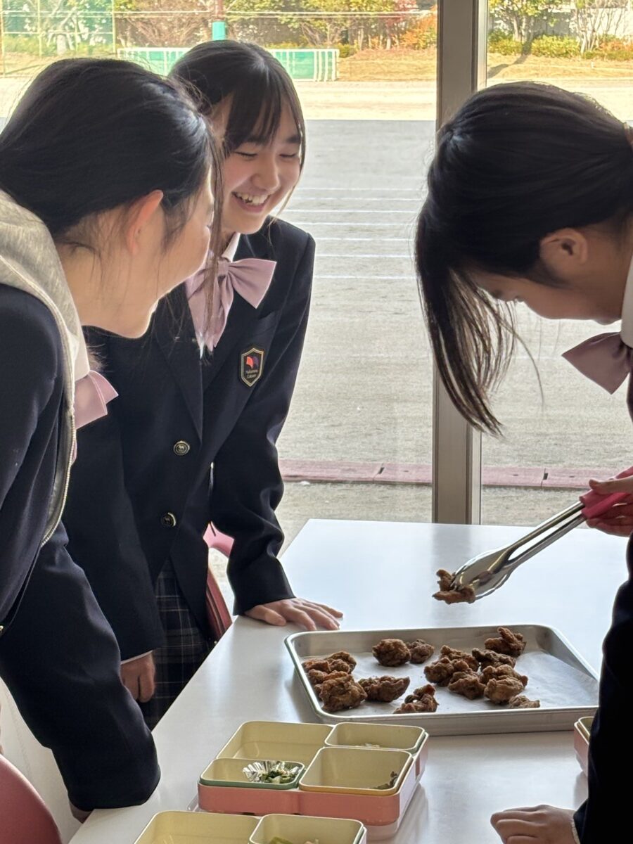 生徒たちはクリスマス献立を心待ちにしており、友達との会話も弾む、笑顔あふれる給食時間となりました。