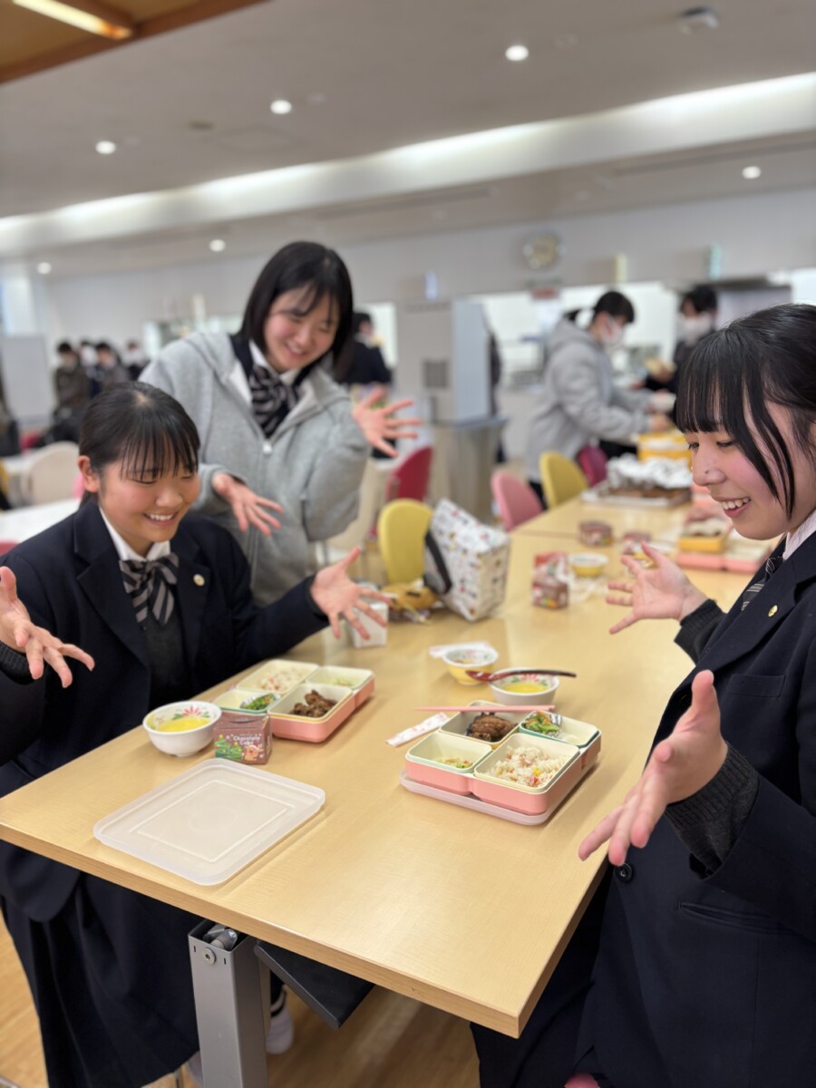 この日は高校3年生(一貫生)を招待し、中学生と同じスクールランチを楽しみました。