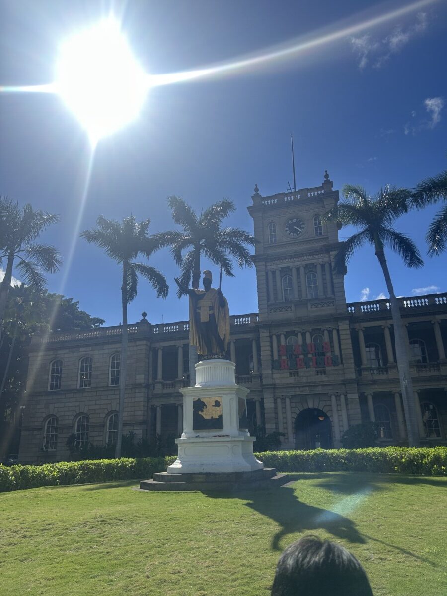 ハワイ到着1日目。10日の夜に羽田を出発し、10日の朝にハワイに到着という時差を感じながら、ホノルルの主な観光地を巡りました。日本とは全く違う気候や風土を感じながら、歴史についても学びました。