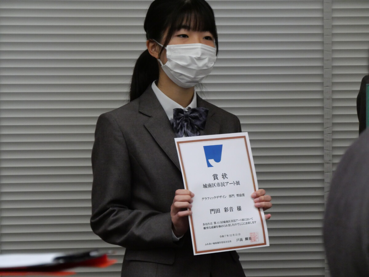 美術部 第41回城南区市民アート展 グラフィックデザイン部門 奨励賞 門田彩音さん