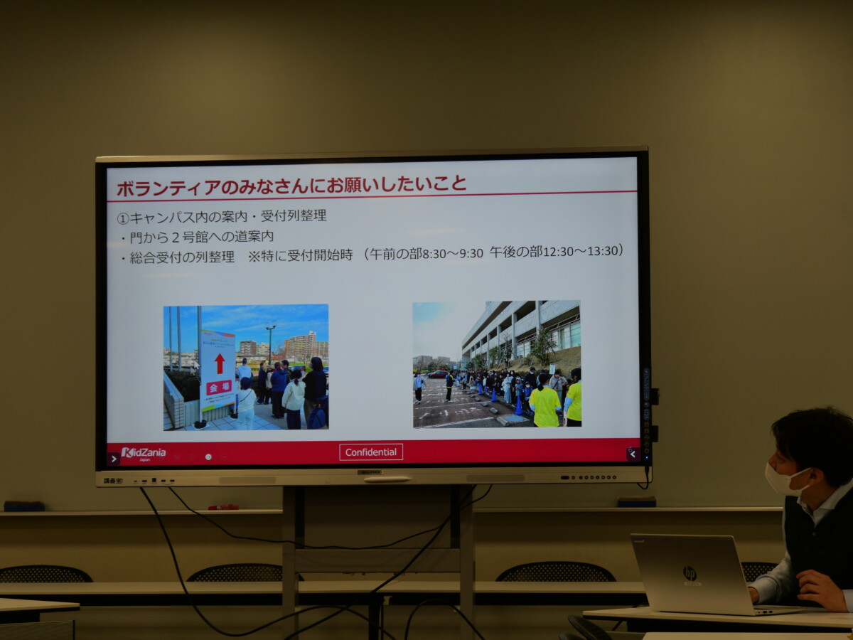 この日はキッザニア福岡の方にお越しいただき、ボランティアの活動内容について説明会が行われました