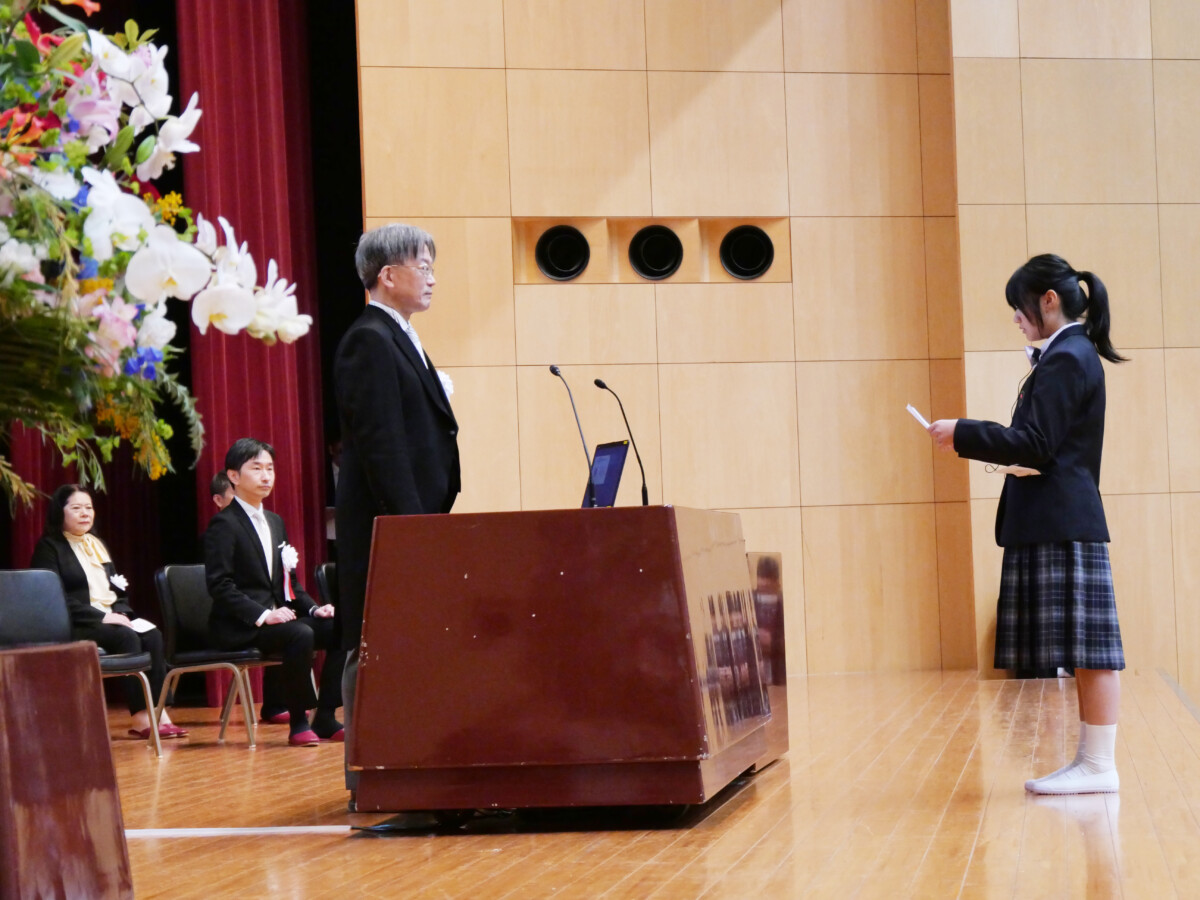 石丸校長による式辞、新入生代表による宣誓が行われたほか、後援会会長より心温まるご祝辞をいただきました。