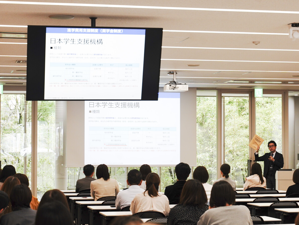 本講演会では株式会社JSコーポレーション 大野 伸一郎 様をご講師としてお迎えし、受験・進学するにあたっての費用及び奨学金等について、最新の情報とともにお話いただきました。